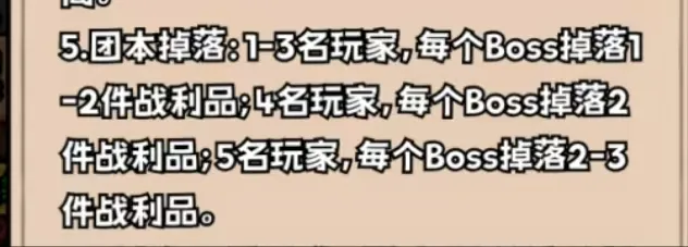 4)副本每个BOSS掉落宝箱是根据进入团本队伍数量有直接关系,不含伙伴数量和协助人员数量。