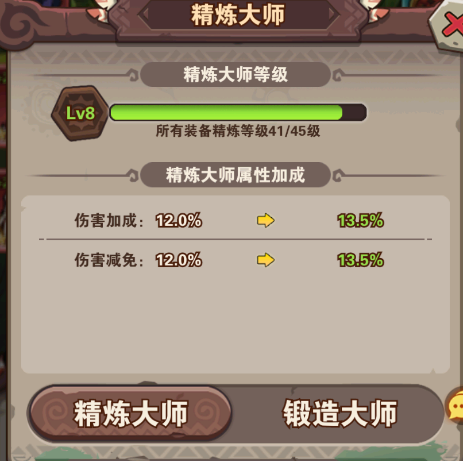 ⑶精炼:需要精炼矿来提升,精炼矿可在历练(过关战将)获得,也可在52级的天命商店购买,氪老可以在福利礼包购买;精炼大师是每一个装备的精炼等级,达到要求的等级能提升属性加成