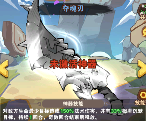 夺魂刃:对敌方生命最少目标造成150%法术伤害,并有33%概率沉默目标,持续1回合,奇数回合结束后释放。