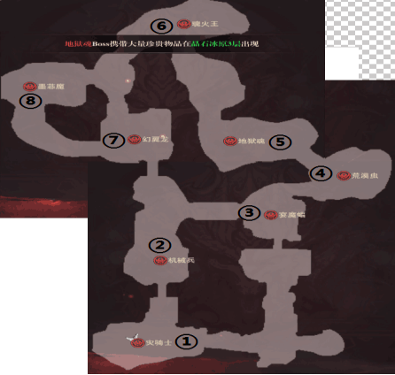 晶石冰原的Boss因为受到冰封效果,血量回复速度变慢。所以我们利用这一点,1-2-3BOSS击杀后副本的冰封值仍有剩余,下一只我们去Boss8,但不要直接击杀,打残血到10%以内,再前往另一只Boss7同样打到10%残血以内,此时回到Boss8会发现血量仅回复到 60%左右,抓紧时间击杀Boss8,进入30s的退出倒计时,这时候我们回到血量在40%左右的Boss7将其击杀,利用剩下的20s的时间可以再击杀多1个boss。