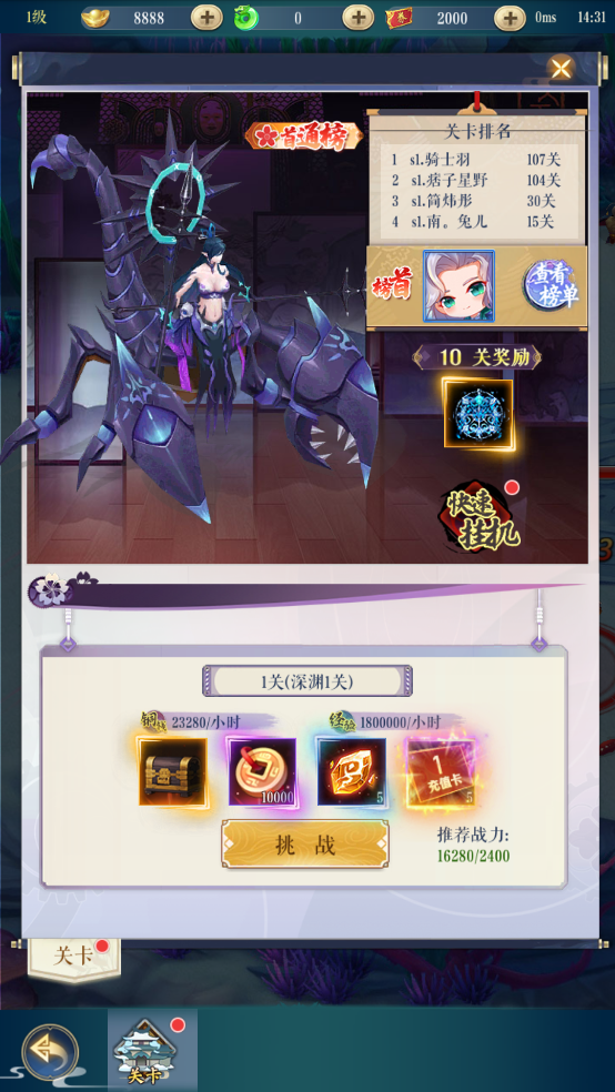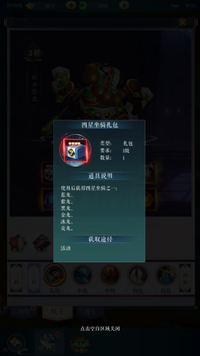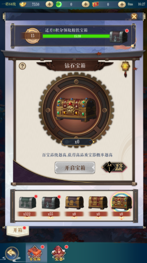 闯关可免费获得宝箱,每个宝箱含有若干充值卡、珍稀道具、宝器
